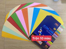 Bìa trộn 10 màu A4 ĐL160gsm với chất liệu dày dặn màu sắc tươi sáng, thường dùng để đóng sổ sách, gấp quạt, làm đồ handmade ...