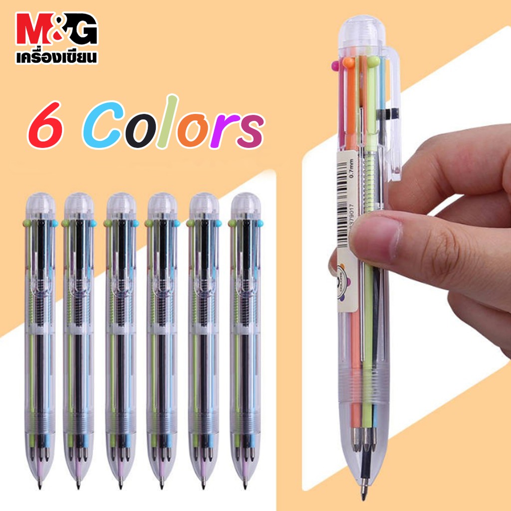 Bút bi 6 màu M&G ABPV6101 có Đầu bi làm bằng hợp kim bền chắc cho nét viết đậm, mực xuống đều, không bị tắc mực, viết trơn, êm tay.